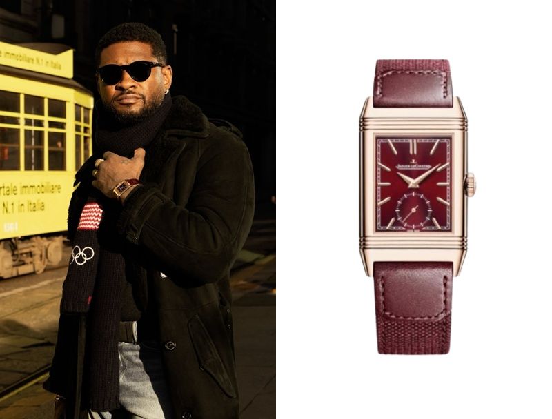 Usher’s Watch – Part 4 February 27, 2026 Usher, an American singer, wears a Jaeger-LeCoultre Reverso Tribute Monoface Small Seconds Ref. Q713256J. Usher’s WatchUsher’s Watch – Part 2Usher’s Watch – Part 3