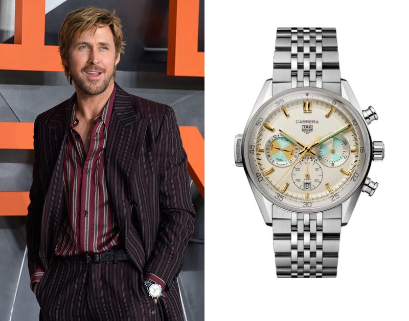 Ryan Gosling, a Canadian actor, wears a TAG Heuer Carrera Chronograph Seafarer Ref. CBS2016.EB0430.