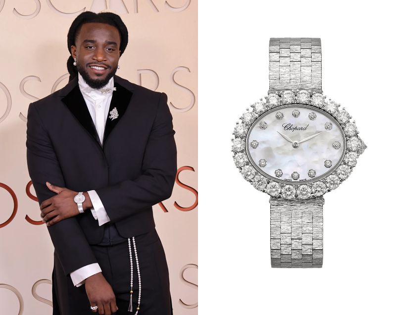 Shaboozey, a Nigerian-American singer-songwriter and rapper, wears a Chopard L’Heure du Diamant Oval Small Ref. 10A385-1106.