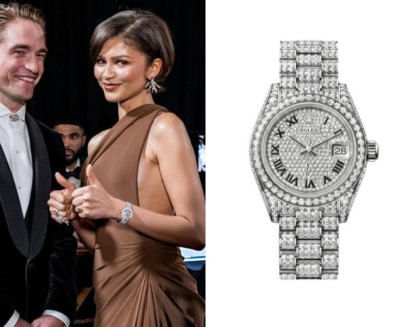 Zendaya’s Watch – Part 8 March 19, 2026 Zendaya, an American actress and singer, wears a Rolex Lady-Datejust fully pavé set with diamonds Ref. 279459RBR. Zendaya’s WatchZendaya’s Watch – Part 2Zendaya’s Watch – Part 3Zendaya’s Watch – Part 4Zendaya’s Watch – Part 5Zendaya’s Watch – Part 6Zendaya’s Watch – Part 7