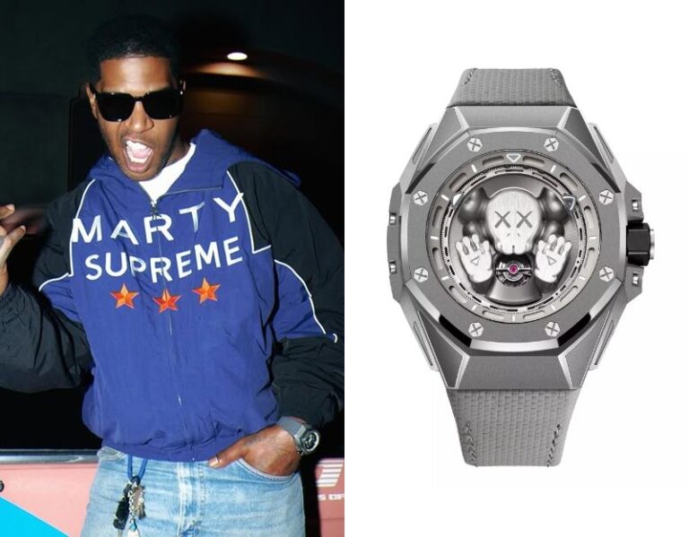 Kid Cudi’s Watch June 13, 2025December 27, 2025 Kid Cudi, an American rapper, wears a Casio x Bape x Kid Cudi x Ben Baller Gold & Gemstone G-Shock DW-6900 Watch. Kid Cudi’s Watch – Part 2