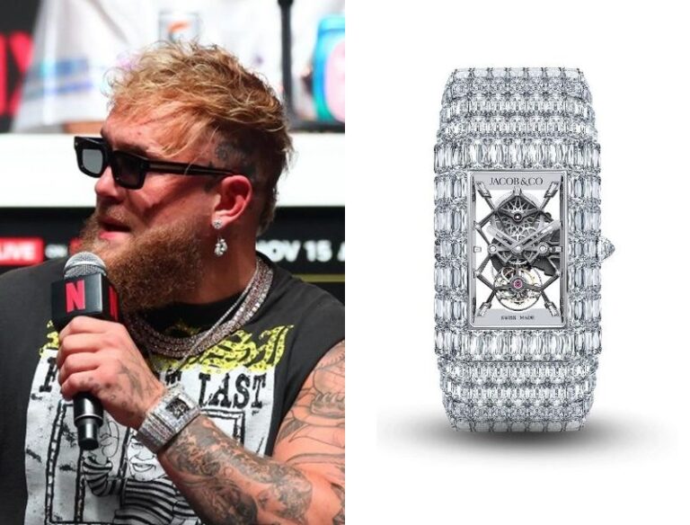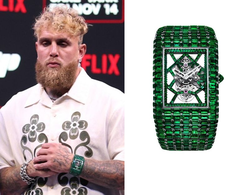 Jake Paul’s Watch – Part 2 September 24, 2025 Jake Paul, an American internet personality and YouTuber, wears a Jacob & Co. Billionaire III Emeralds Ref. BL115.30.AB.UA.A30AB. Jake Paul’s Watch