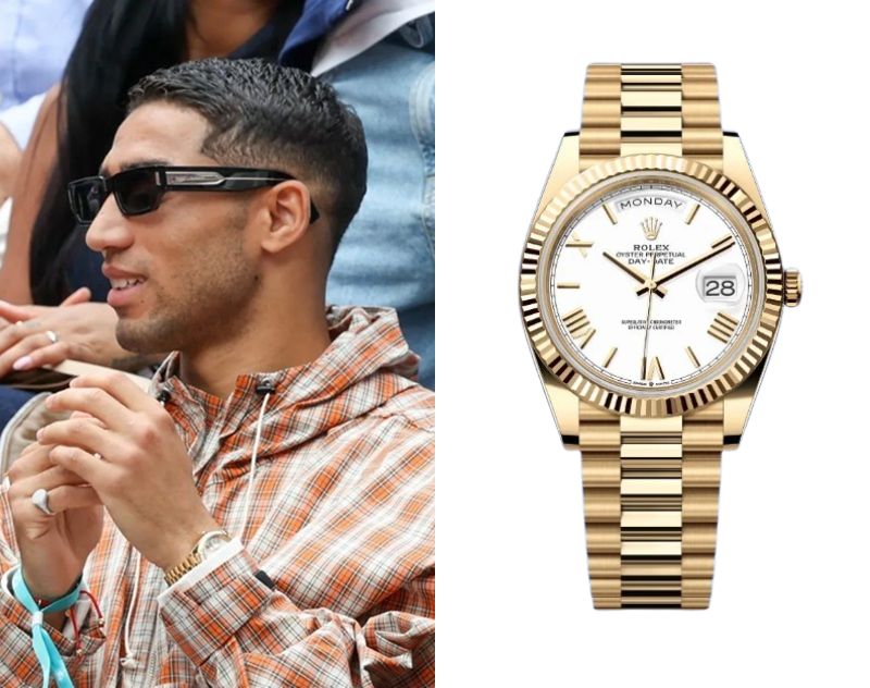Achraf Hakimi’s Watch September 27, 2025 Achraf Hakimi, a Spanish professional footballer, wears a Rolex Day-Date Ref. 228238-0042.