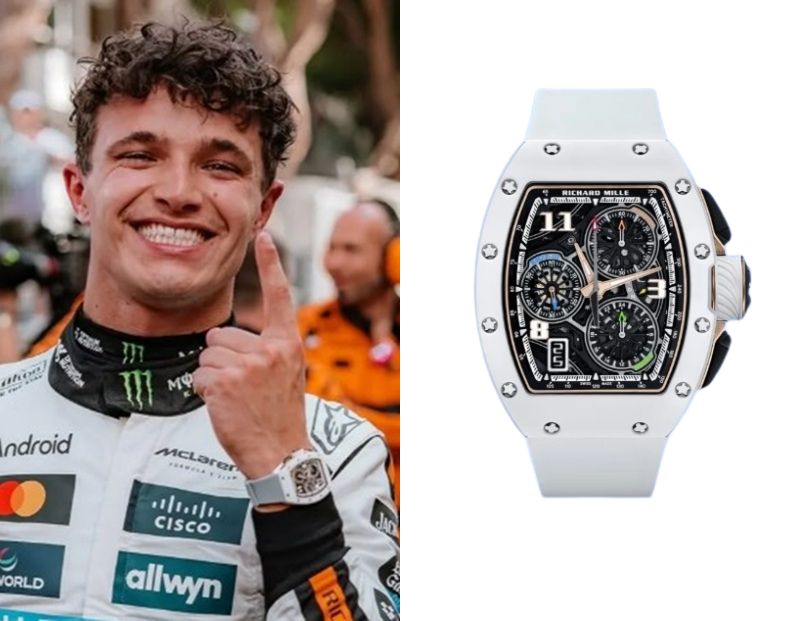 Lando Norris’ Watch – Part 3 September 28, 2025 Lando Norris, a British racing driver, wears a Richard Mille RM 72-01 Automatic Winding Lifestyle Flyback Chronograph White Ceramic. Lando Norris’ WatchLando Norris’ Watch – Part 2