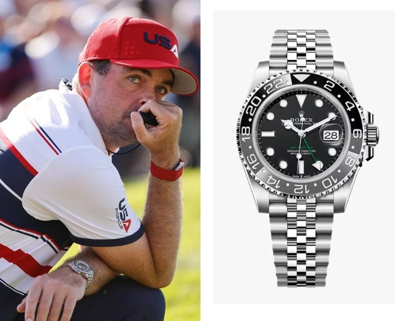 Keegan Bradley’s Watch September 29, 2025 Keegan Bradley, an American golfer, wears a Rolex GMT-Master II 40mm Ref. 126710GRNR.