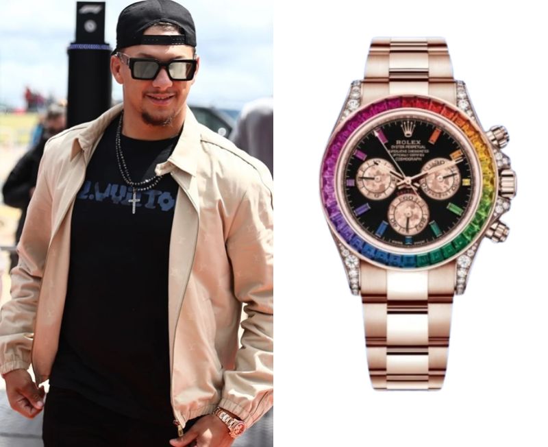 Patrick Mahomes’ Watch – Part 4 October 3, 2025 Patrick Mahomes, an American football player, wears a Rolex Daytona Rainbow Everose Gold Ref. 116595RBOW. Patrick Mahomes’ WatchPatrick Mahomes’ Watch – Part 2Patrick Mahomes’ Watch – Part 3Patrick Mahomes’ Watch – Part 5