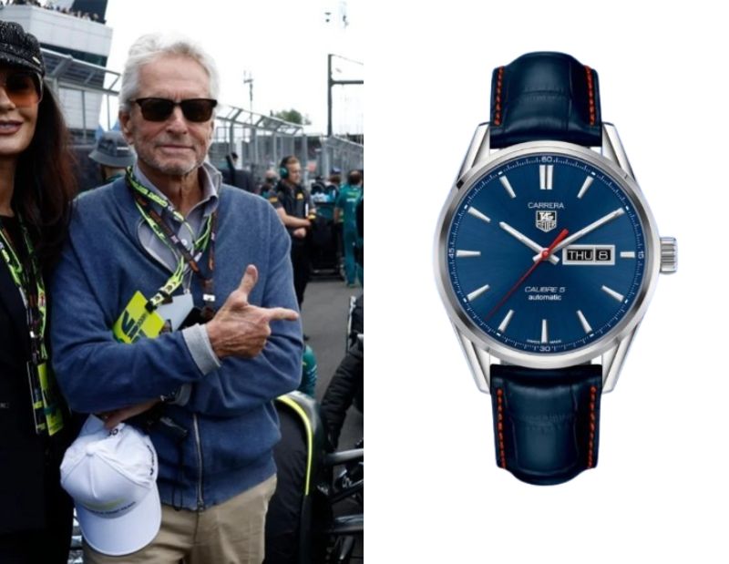 Michael Douglas’ Watch October 3, 2025 Michael Douglas, an American actor and producer, wears a TAG Heuer Carrera Steel 41MM Ref. WAR201P.FC6485.