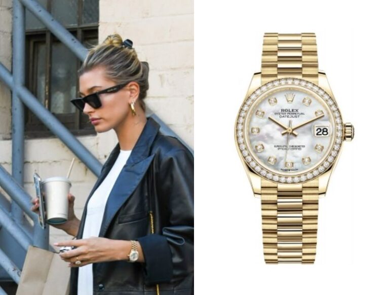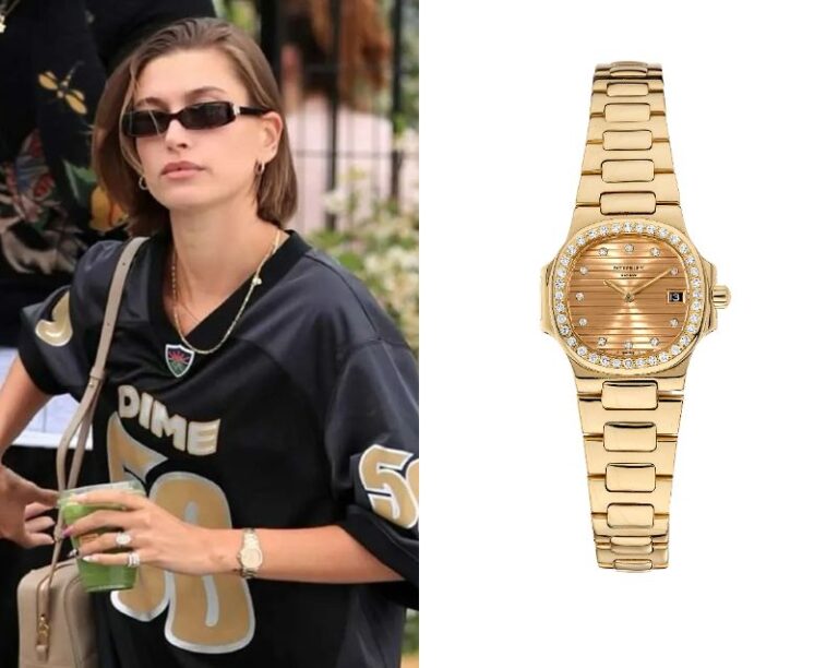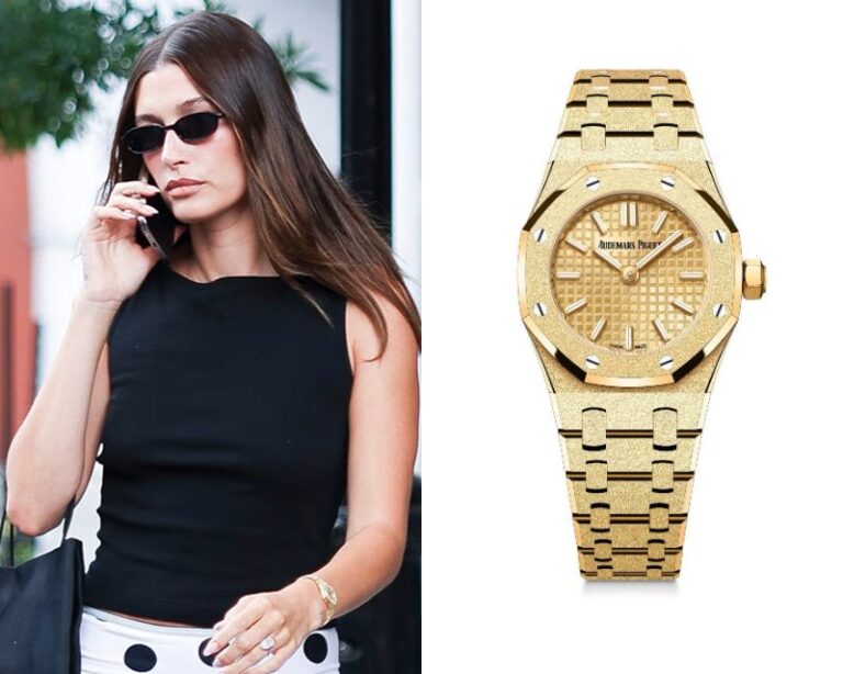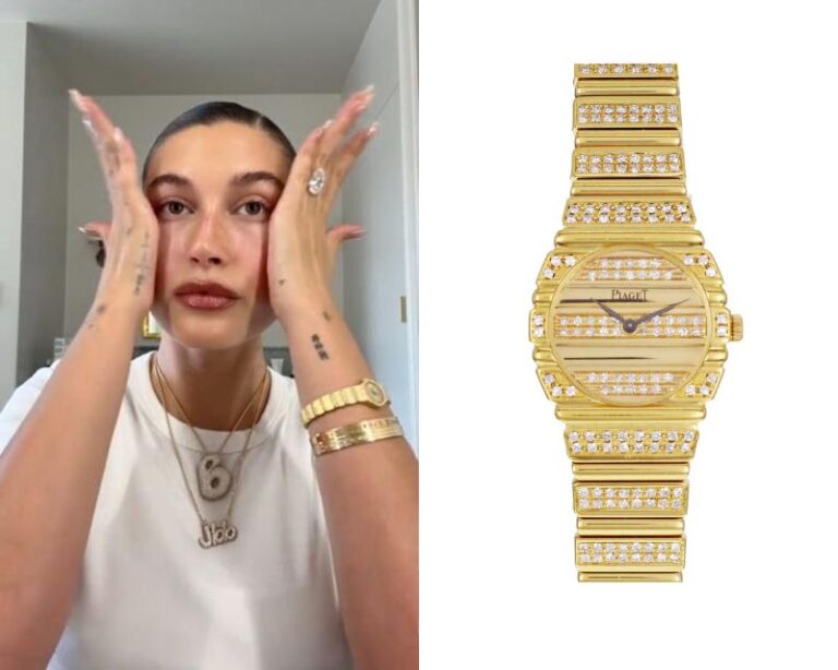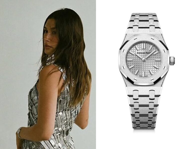 Hailey Bieber’s Watch October 4, 2025 Hailey Bieber, an American model, wears an Audemars Piguet Vintage Diamond-set White Gold Bracelet Watch with Opal Dial. Hailey Bieber’s Watch – Part 2