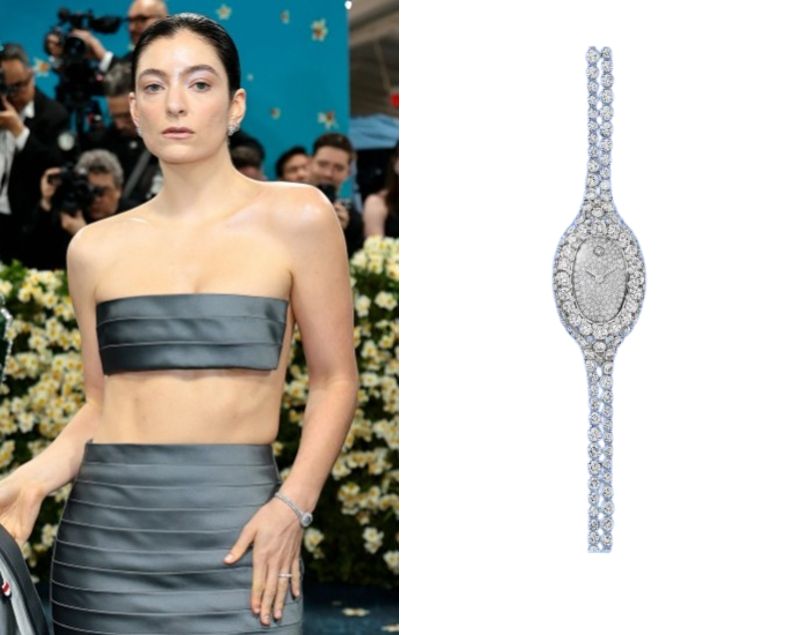 Lorde’s Watch October 4, 2025 Lorde, a New Zealand singer-songwriter, wears a Cartier Baignoire Jewelry Watch White Gold with Diamonds Ref. HPI01528.