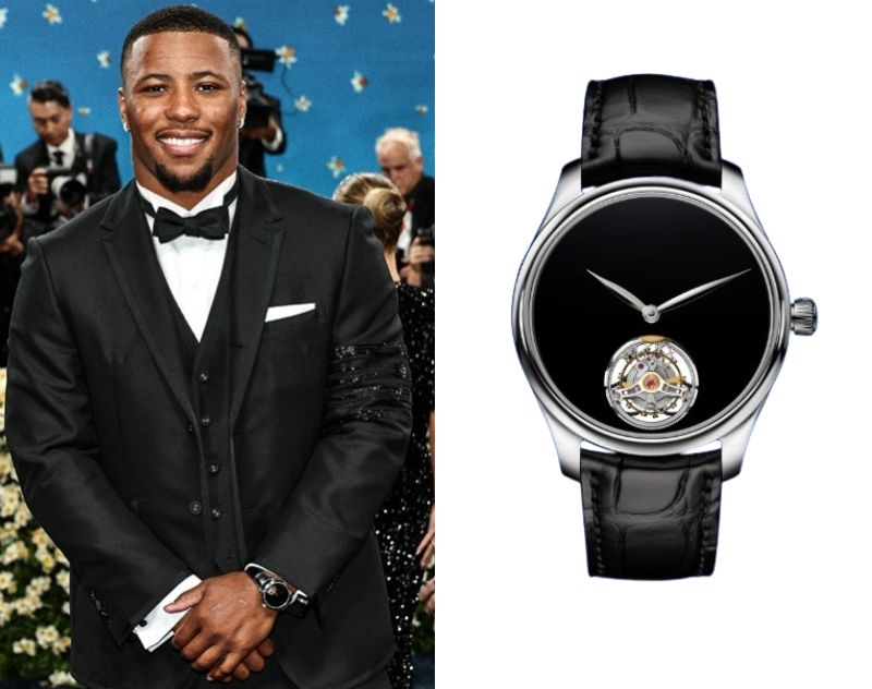 Saquon Barkley’s Watch October 4, 2025 Saquon Barkley, an American football player, wears an H. Moser & Cie. Endeavour Tourbillon Concept Vantablack Steel Ref. 1805-1200.