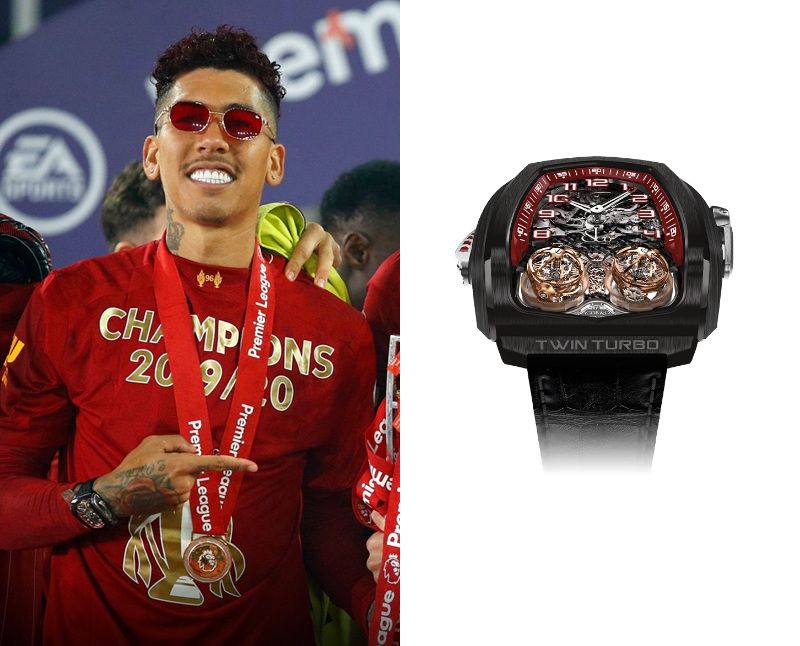 Roberto Firmino’s Watch October 5, 2025 Roberto Firmino, a Brazilian footballer, wears a Jacob & Co. Twin Turbo Black DLC.