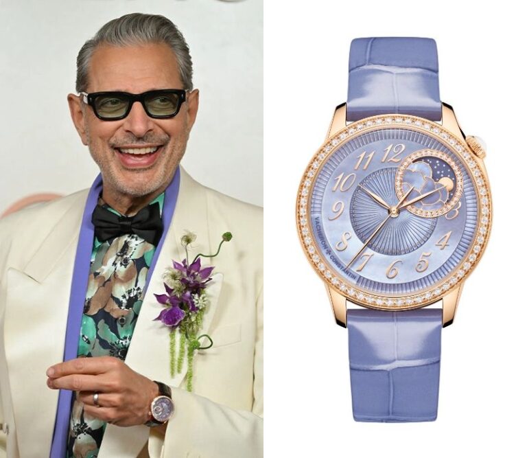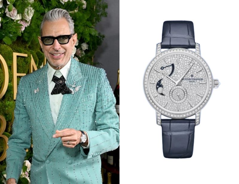 Jeff Goldblum, an American actor, wears a Vacheron Constantin Traditionnelle Moon Phase White Gold with Diamonds Ref. 7006T/000G-B913.