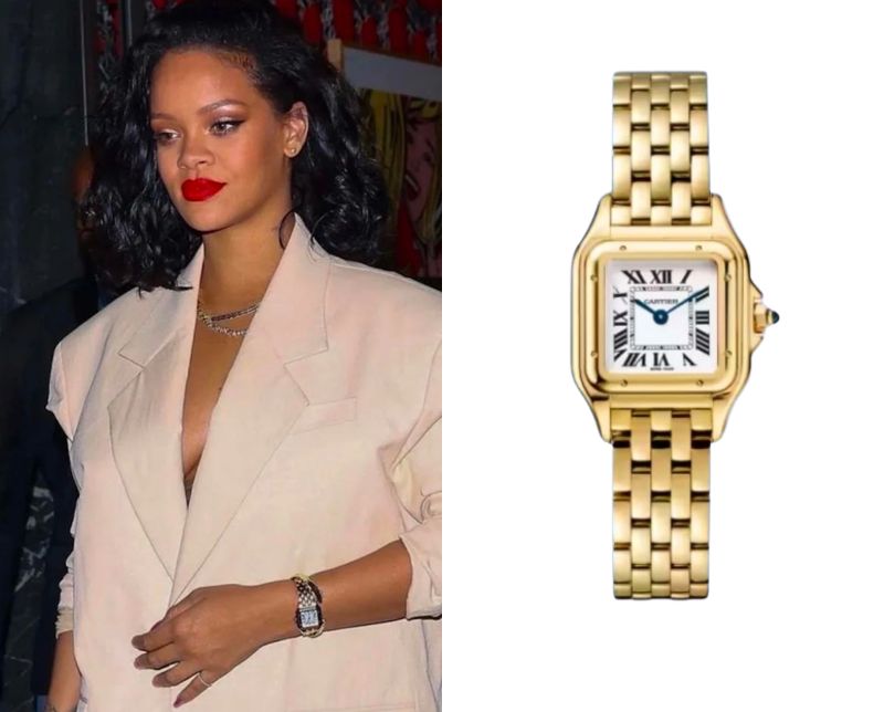 Rihanna, a Barbadian singer-songwriter, wears a Cartier Panthère Small Ref. WGPN0038.