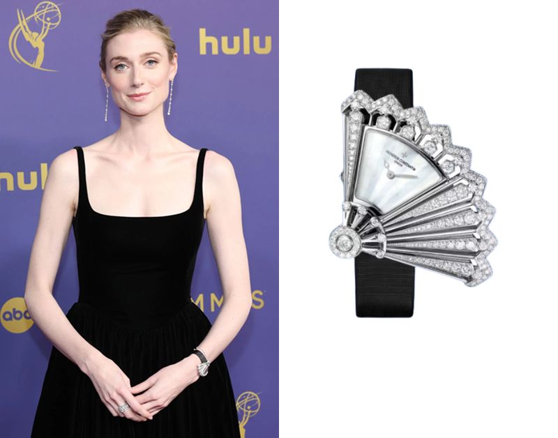Elizabeth Debicki’s Watch October 7, 2025 Elizabeth Debicki, an Australian actress, wears a Vacheron Constantin Heures Creatives Heure Discrète White Gold with Diamonds Ref. 37530/000G-B060.