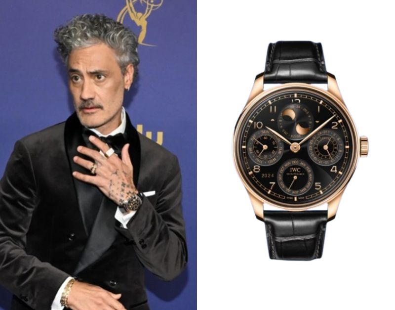 Taika Waititi’s Watch October 7, 2025 Taika Waititi, a New Zealand film director, television director, screenwriter, actor, and comedian, wears an IWC Portugieser Perpetual Calendar 5N Gold Ref. IW503702.