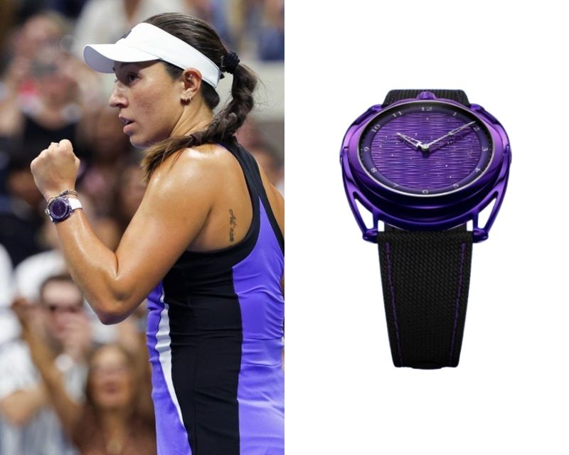 Jessica Pegula, an American tennis player, wears a De Bethune DB28xs Purple Rain Titanium 38.7mm Ref. DB28XSPR.