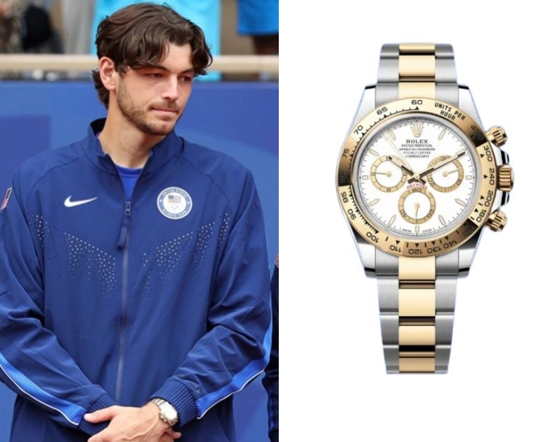 Taylor Fritz’s Watch October 8, 2025 Taylor Fritz, an American tennis player, wears a Rolex Daytona Yellow Gold and Steel 40mm Ref. 126503-0001.