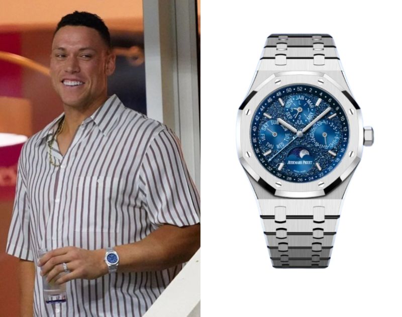 Aaron Judge, an American baseball player, wears an Audemars Piguet Royal Oak Perpetual Calendar John Mayer White Gold 41mm Ref. 26574BC.00.1220BC.02.