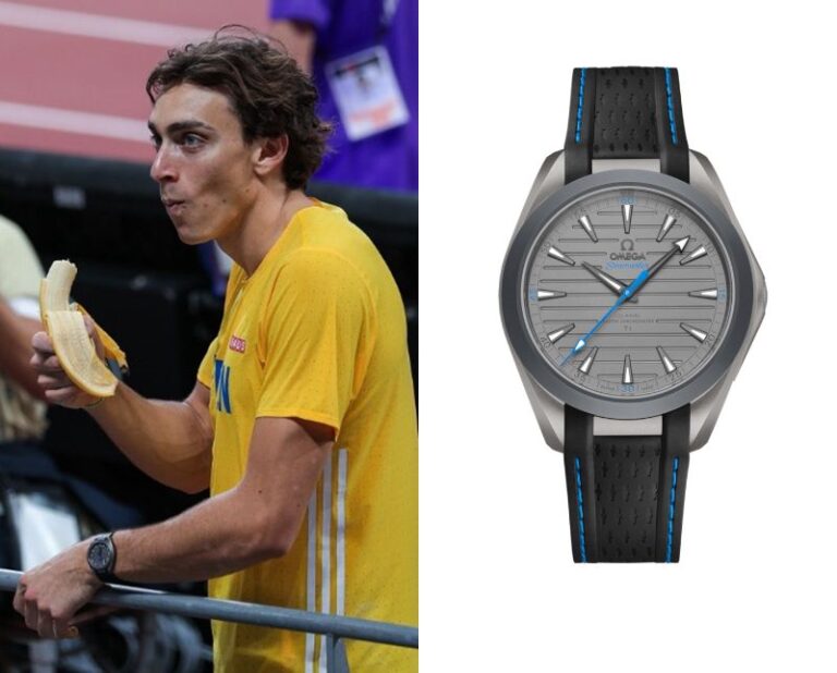 Armand Duplantis’ Watch – Part 2 October 8, 2025 Armand Duplantis, a Swedish pole vaulter, wears an Omega Seamaster Aqua Terra 150M Titanium 41mm Ref. 220.92.41.21.03.002. Armand Duplantis’ Watch