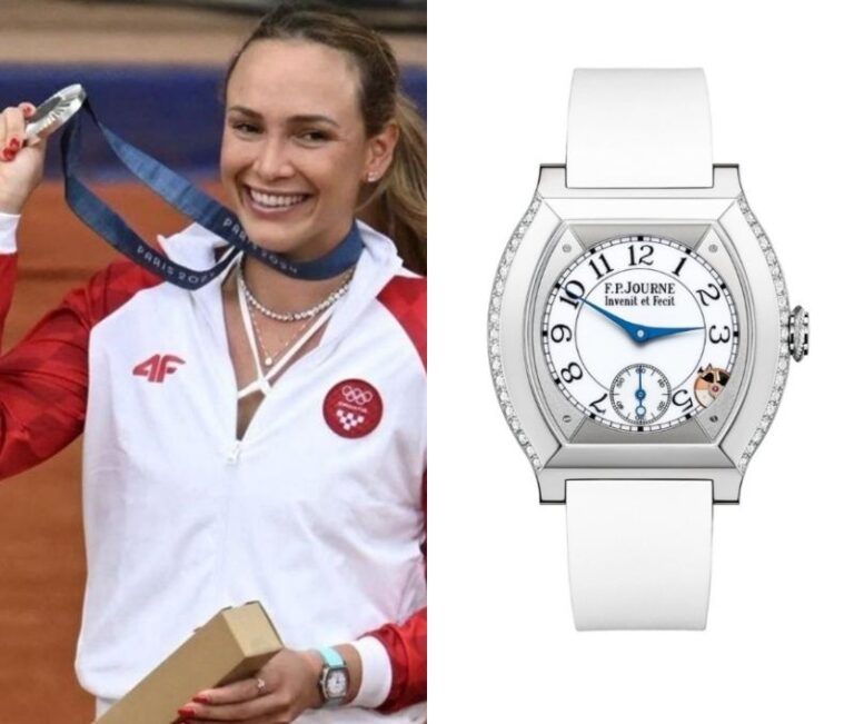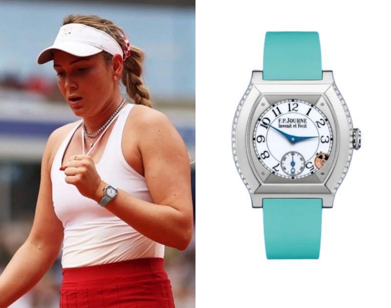 Donna Vekić, a Croatian tennis player, wears an F.P. Journe Élégante Titanium with Diamonds 40mm.
