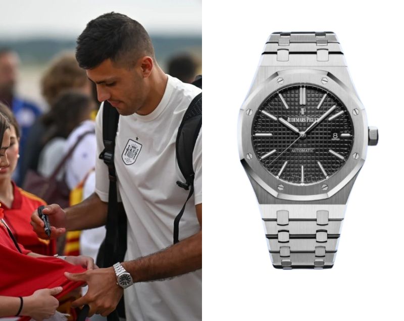Rodri Hernández, a Spanish footballer, wears an Audemars Piguet Royal Oak Selfwinding Steel 41mm Ref. 15400ST.00.1220ST.01.A.