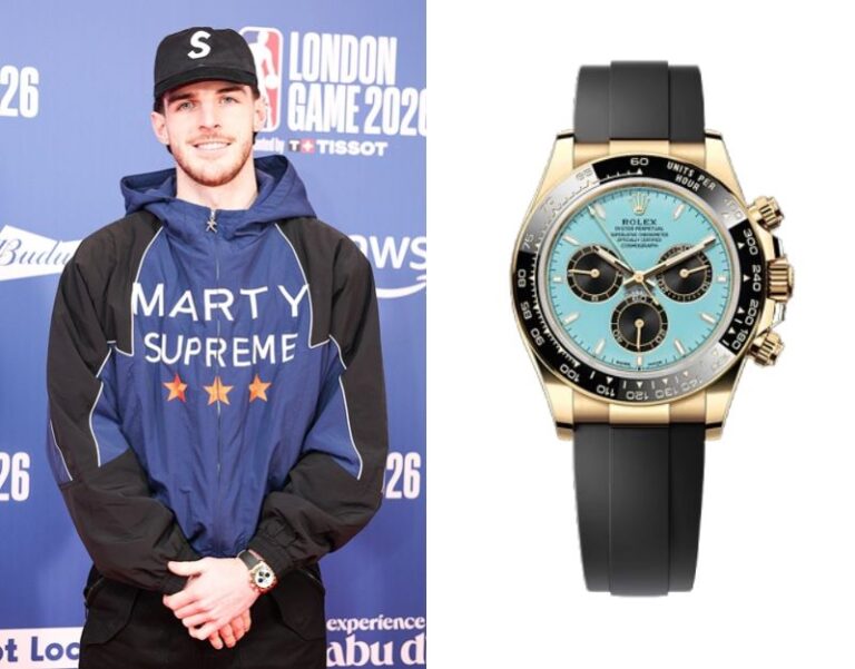 Declan Rice’s Watch October 19, 2025 Declan Rice, an English footballer, wears an Audemars Piguet Royal Oak Jumbo Extra-Thin Yellow Gold 39mm Ref. 16202BA.00.1240BA.02. Declan Rice’s Watch – Part 2Declan Rice’s Watch – Part 3Declan Rice’s Watch – Part 4Declan Rice’s Watch – Part 5