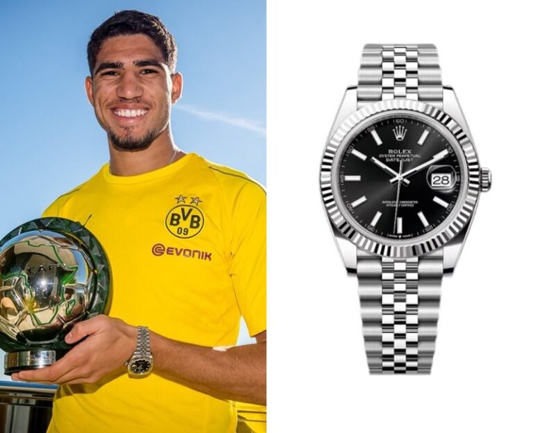 Achraf Hakimi’s Watch – Part 2 October 20, 2025 Achraf Hakimi, a Spanish footballer, wears an Audemars Piguet Chronograph 1017 ALYX 9SM Yellow Gold 41mm Ref. 26240BA.00.1320BA.01. Achraf Hakimi’s WatchAchraf Hakimi’s Watch – Part 3Achraf Hakimi’s Watch – Part 4Achraf Hakimi’s Watch – Part 5