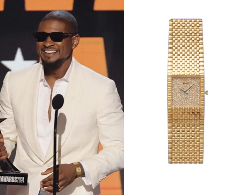 Usher’s Watch – Part 2 October 21, 2025 Usher, an American singer and songwriter, wears a Piaget Polo Pave Diamond Dial Ref. 40991654/AS09074. Usher’s Watch