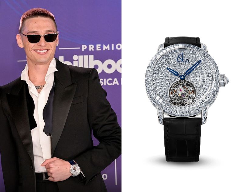Peso Pluma’s Watch – Part 3 October 25, 2025 Peso Pluma, a Mexican singer and rapper, wears a Jacob & Co. Caviar Tourbillon Ref. CV310.30.BA.AA.A. Peso Pluma’s WatchPeso Pluma’s Watch – Part 2Peso Pluma’s Watch – Part 4