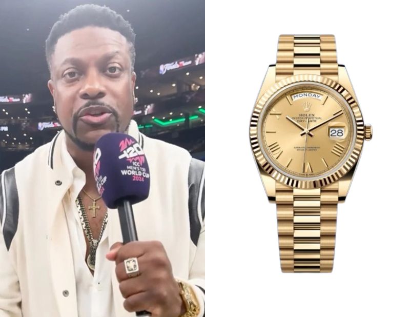 Chris Tucker’s Watch October 26, 2025 Chris Tucker, an American actor, wears a Rolex Day-Date 40 Ref. 228238-0006 Yellow Gold.